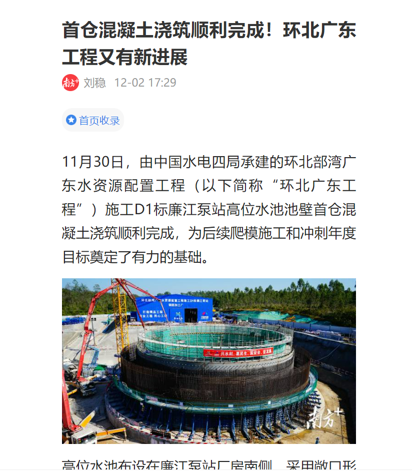 南方日報:首倉混凝土澆筑順利完成!環(huán)北廣東工程又有新進(jìn)展 |